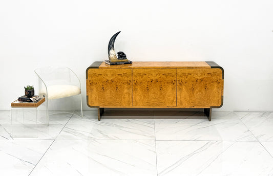 Burl Wood and Burnished Bronze Credenza, Leon Rosen, Pace Collection, 1970's