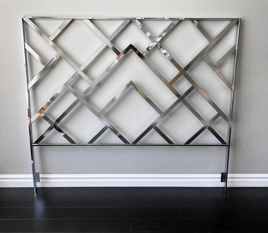 Monumental Chrome "Oriental" King Headboard & Frame, Elaine Cohen, D.I.A., 1972