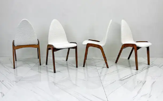Set of 4 Mid Century Walnut Dining Chairs By Chet Beardsley in White Boucle
