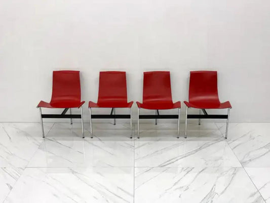 Set of Four Red Leather T Chairs, Katavolos & Littell & Kelley