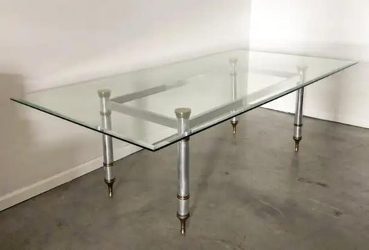 1960s Maison Jansen Steel and Brass Dining Table