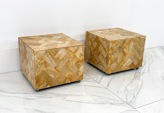 1970's Herringbone Onyx Pedestal Cocktail Tables, A Pair