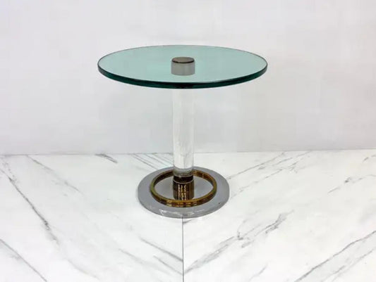 Polished Stainless, Bronze and Lucite Pedestal Table, Romeo Rega, 1970's