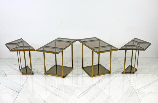 Smoked Glass Brass Puzzle Dining Table After Gabriella Crespi, Italy, 1970's
