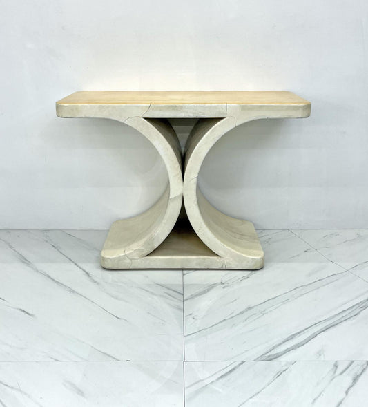 Patinated Karl Springer JMF Goatskin Console Table, Signed, 1970's