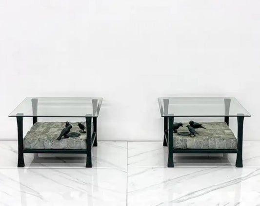 Maitland Smith Marble and Bronze Sculptural Side / Accent Tables, a Pair