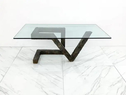 Brutalist Cast Metal Geometric Dining Table in the Manner of Paul Evans