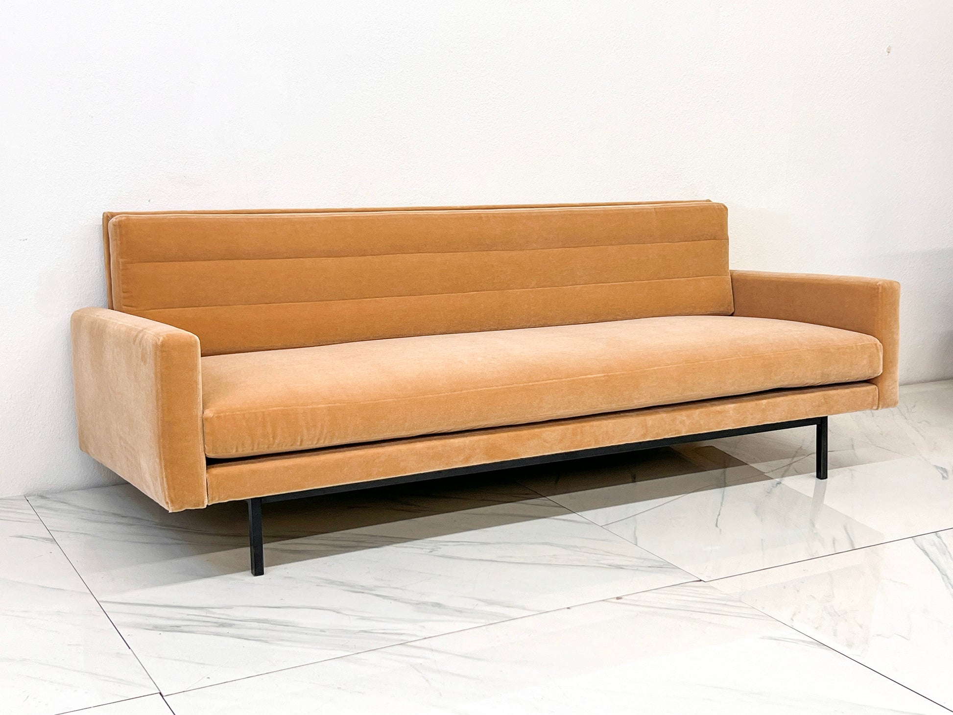 This early Richard Schultz for Knoll daybed sofa is stunning! A standard tuxedo style, mohair-wrapped, and sharper than Brad Pitt’s jawline in the ‘90s. We had this bad boy repholstered in a sumptuous butterscotch mohair, with the quilted seatback, done just like the original spec from the 1950s. It’s the kind of detail that makes design nerds nod approvingly while everyone else just drools.