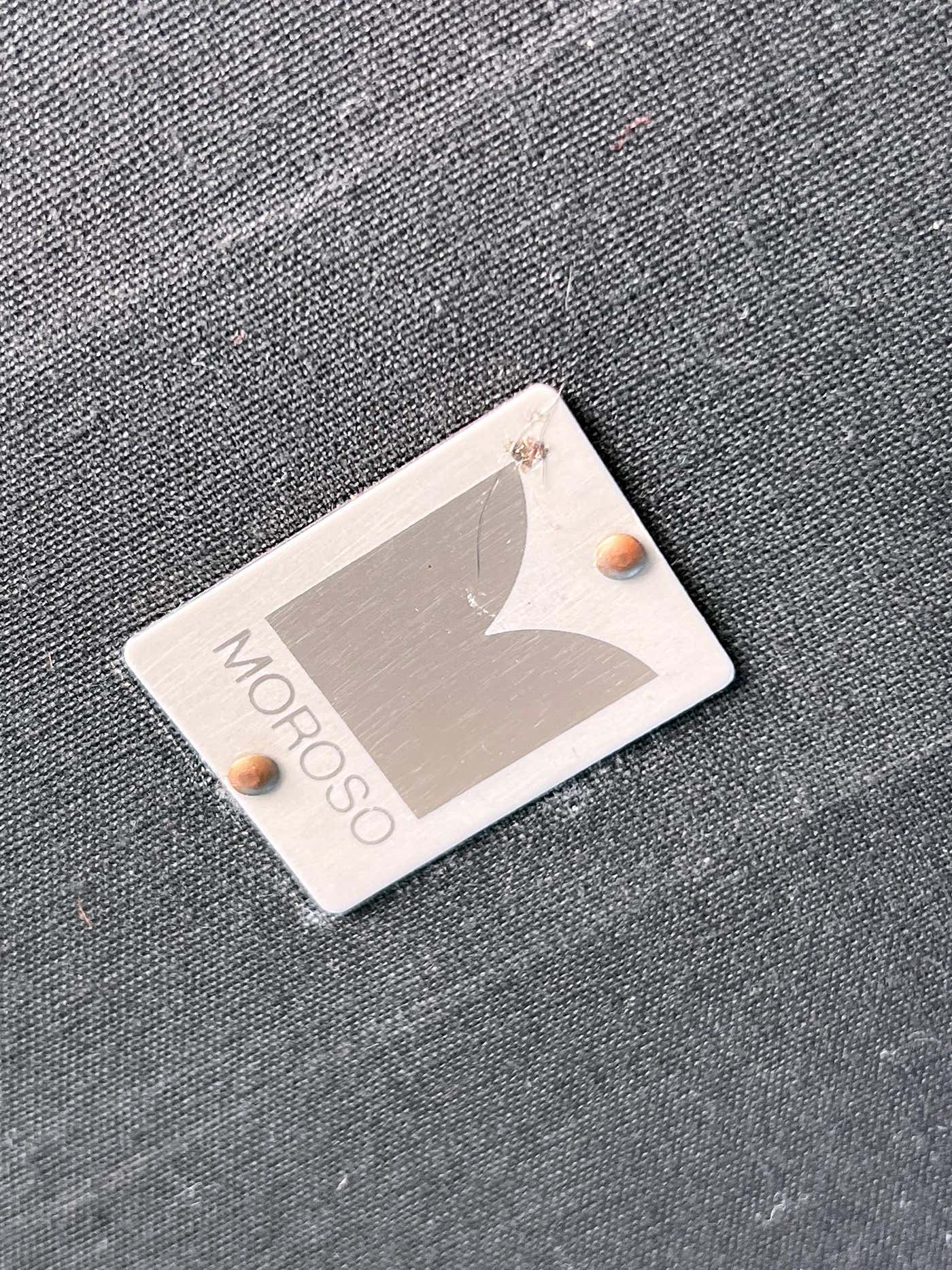 Condition: The blanket bears age, patina, and signs of prior life — exactly as it should. The bench’s chrome legs are clean and elegant. Original Moroso tags intact on the underside.